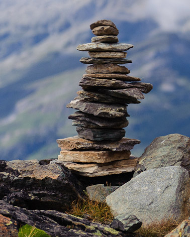 Cairns may be painted or otherwise decorated, whether for increased visibility or for religious reasons.